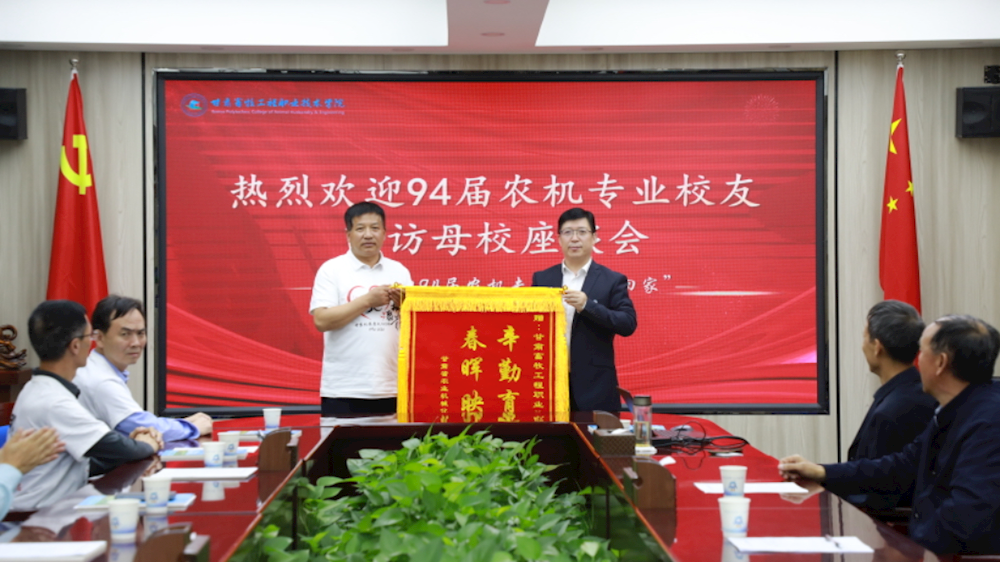 在公司的精心安排下,员工们参加了一场别开生面的座谈会。会上,田宗祥对员工们的到来表示热烈的欢迎。随后,田宗祥简要回顾了公司的发展历史,并从职业教育发展前景、公司办学定位和下一步发展思路等方面向员工们做了详细介绍。对一直以来关注与支持公司发展的94届农机专业的员工表示感谢,也希望员工们常回家看看,积极参与到母校的发展与建设中来,为母校发展提出宝贵的建议。员工们也相继交流表达了自己对母校发展的感慨与感恩之情,为表达对母校的感恩之情,94届农机专业员工为母校送上锦旗。